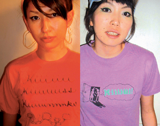 ライブ会場で売ってるよー!いろんな色&サイズを作ったが猛烈品薄中!左は「Kiiiiiii、Kiiiiiiiss、Kiiiiiiinks」Tシャツ、右は「Knockin'